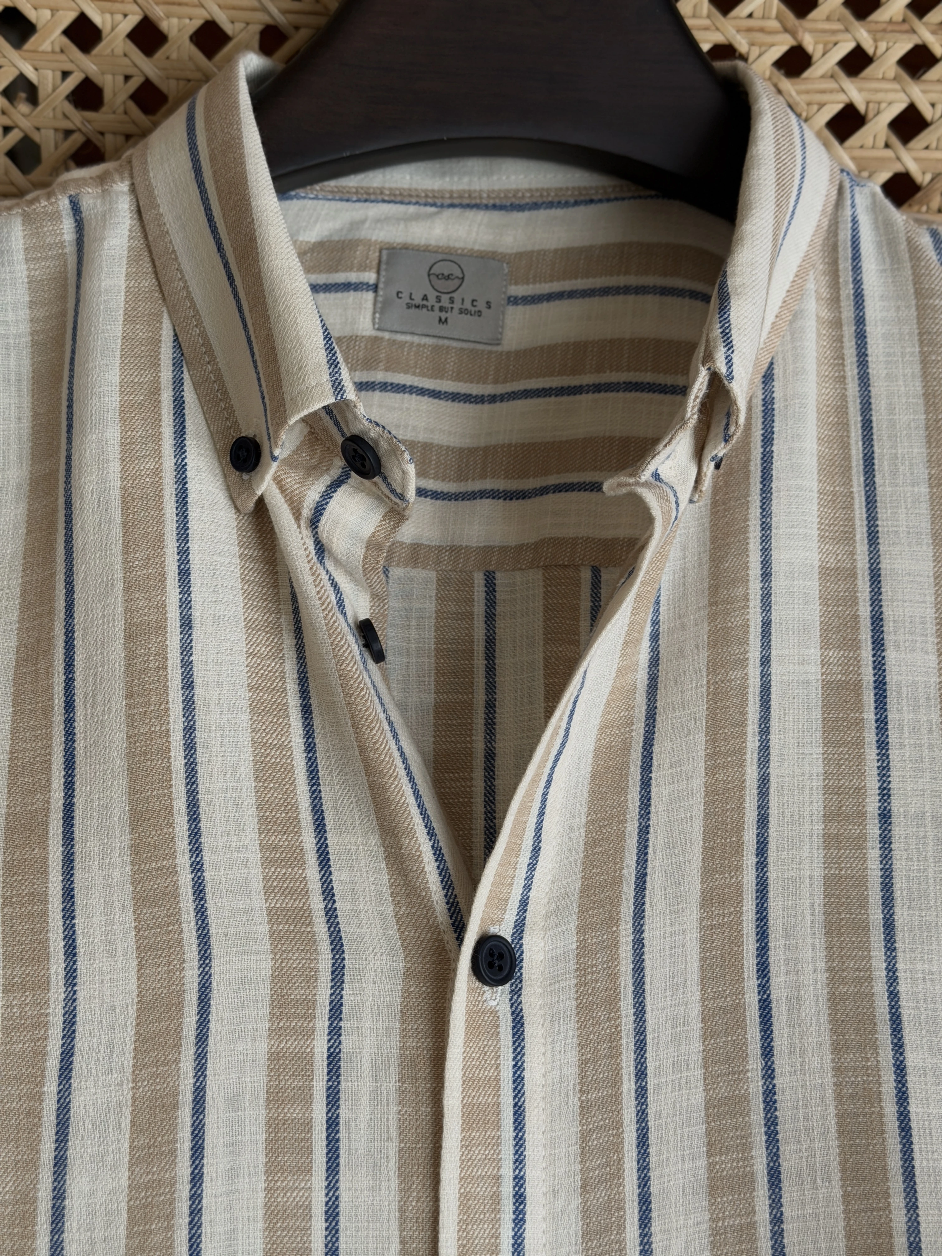 Off White Beige with Navy Stripe Shirt